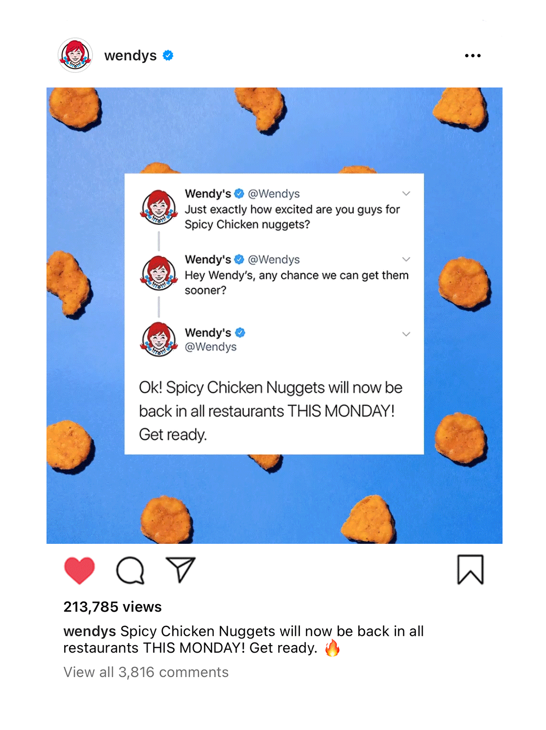 Wendy’s had already carved out a distinct voice on Twitter—but on Instagram, the brand was in need of a serious glow-up. With the return of Spicy Chicken Nuggets and a timely tweet from Chance the Rapper, the perfect moment arrived to reimagine Wendy’s presence as a true visual influencer.
